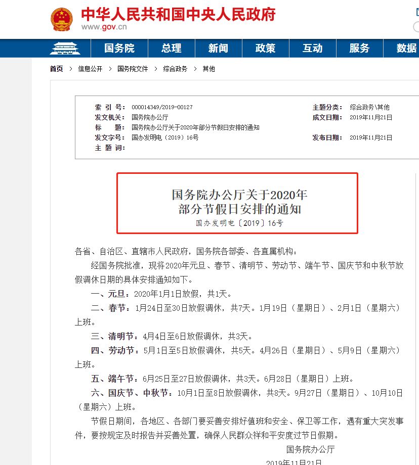 2020國慶中秋放假安排表