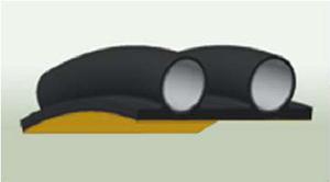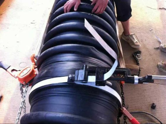 繞在加熱的滾筒模具上,保證了結(jié)構(gòu)壁管熔接縫質(zhì)量。特別是結(jié)構(gòu)設(shè)計中平料帶的熔接縫被聚乙烯包覆支撐管所覆
